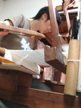 自分が発注している着物が機に掛かっているのを見る機会は、こんなに長い呉服屋のキャリアでもそうないものです。だいたい自分の性格上、こういう姿はあまり 見てはいけない(笑)ように思ってしまうのです。 はっきりいって『邪魔をしてないかな・・・』などと考えてしまいます。 昔、バーテンダーをしていた頃、他のお店に飲みに行かせて頂いた時、先輩バーテンダーがシェイカーを降り始めると、そちらを見ないようにようにしていました。 ( 湯島、ESTの渡辺さん )・・・とは少し違う気もしますが、特にものを創っている人に対する自分の姿勢というのには昔から敏感だったように思います。それと 同じバーテンダーでありながら、僕はパフォーマーであったの対し、渡辺さんは職人でありました。どんな職業に付こうとこのような構図を崩れないであろうな!と変に納得してしまいました。 そして、今は自分がオーダーしたものが形になっていく・・・織り着物の面白さを丁寧に追わせて頂いています。そしてその出来上がったものから、どんな着姿を演出して行くか!に取り組みます。