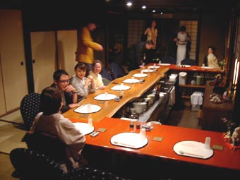 Back to the Future 4/12 pm6:20 毎年、ギリギリの着付けのあがりと、スケジュールが迫ってくるのですが、やはりこうして、ロビーでわいわい、ガヤガヤ。 きもの姿が珍しくない街ですし、ホテルですと違和感ないですが、このグループにはもしかして『何者なんだろう?』という雰囲気があるかもしれません。だいだい、なか志まや自身変だし、このマダム、絶対、日本人だ!きもの姿もすっかり板について、どこかの女将さん。そういえば、TVCMで日本の女性よりも古き良き日本女性らしい外国人の旅館の女将を見てとても感心したけど、まさしくそんな人が今、ここにいます。 あっ、右横に黒羽織に縞のきものの男性がいます。 かれは、エージェントスミス(わかるかな?)なんです。 ということは、この世界はデジタルの幻なのか、だからみんな 自由自在に生きてるんだ。ここのみんなは、みんな『ネオ』なんだ。 そういえば、この後の指令が、、、、 『白ウサギのあとを追え!』 まさしくそうだ。 『Wake up! neo KIMONO』