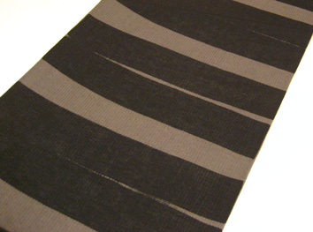 ●2008年05月22日(木) 板締め横段着尺 綿麻の反物です。男女どちらにも向く柄だとおもいます。 反物幅は、ちょうど1尺(=約38センチ)