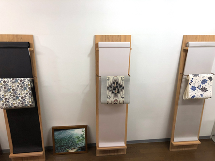 ●2018年07月27日(金) 秋単衣への準備 全て、『染めの着物と染めの帯』の取り合わせになります。染めの着物は小紋染め、細かな縞やドットとなります。染めの帯は型絵染め、生地も座繰生糸、生紬、紙布など、秋に向いながらも、まだ余熱ある季節に合うような素材となっています。