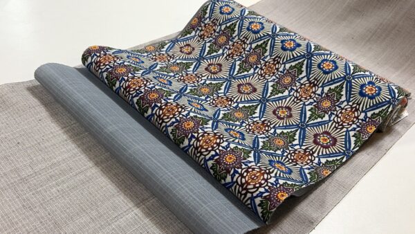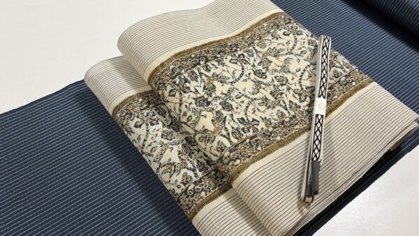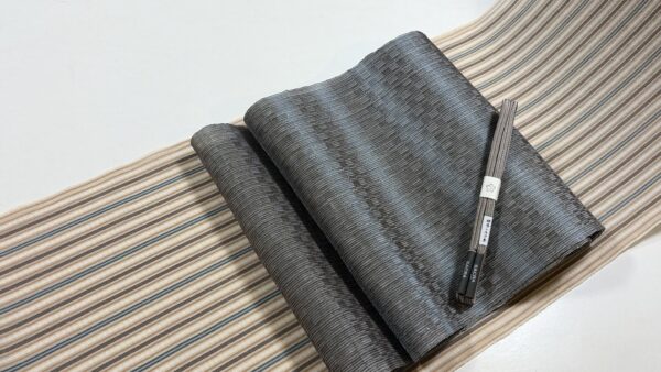 柳晋哉杢糸縞着尺/多ち花 インドネシア更紗生紬染め九寸帯